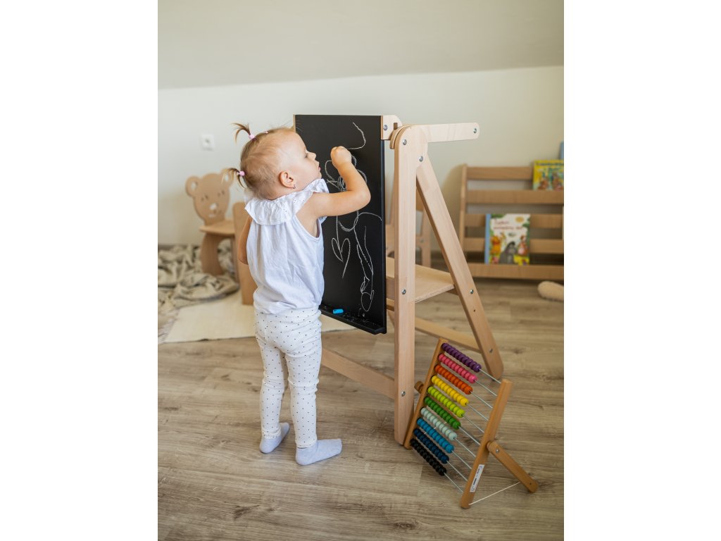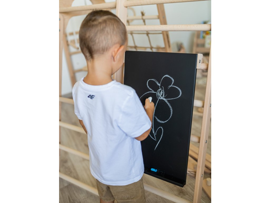 S psací tabulí LAVA může být učící věž pro děti ještě zajímavější! Jednoduše ji zavěsíte na kteroukoli z učících věží z naší nabídky a kreslení a psaní křídami může začít. Tabulku můžete zavěsit dokonce i na přelízku REMO. Je ideální na přestávku během lezení. Dopřejte vašim dětem možnost kreativně tvořit!